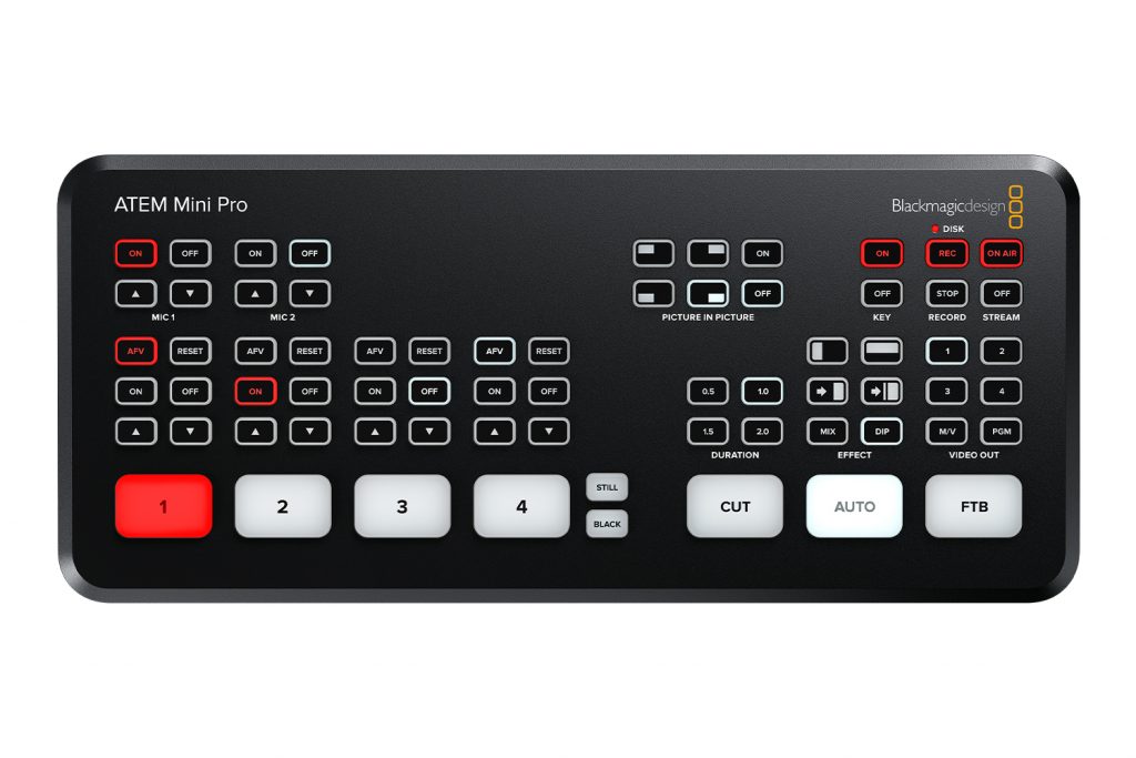 ATEM Mini Pro aynı yukarı akış ve aşağı akış anahtarlayıcıları, gelişmiş bir chroma anahtarlayıcı, iki doğrusal / luma anahtarlayıcı, bir DVE geçiş anahtarlayıcı, bir desen üreticisi ve renk üreteçlerine sahiptir. PNG, TGA, BMP, JPEG ve TIFF formatlarında 20'ye kadar durağan görüntüyü destekleyen dolgu ve anahtar görüntüler için medya oynatıcı desteği de vardır.