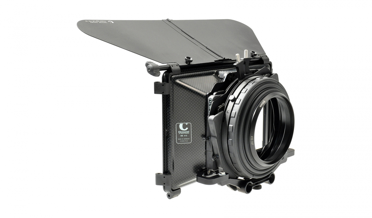 Chrosziel'den 15mm Destek Sistemleri için MB 415 Kompakt Geniş Açılı Mattebox, 5,65 x 5,65" ve 5 x 6" dikey filtreler için çift filtre aşaması içerir. Her iki filtre de herhangi bir dikey konumda hareket ettirilebilir ve sabitlenebilir, ikinci filtre aşaması 360° veya 240º'ye kadar döndürülebilir