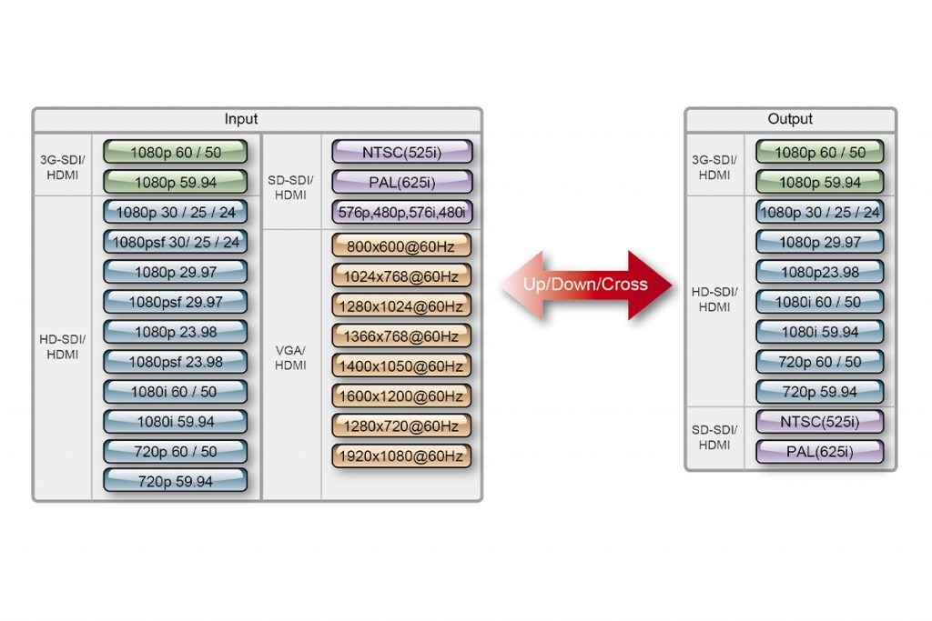 DAC-70, SD'den Full HD'ye kadar çok sayıda video çözünürlüğünü destekler. VGA / HDMI / SDI - HDMI / SDI Dönüştürücü.