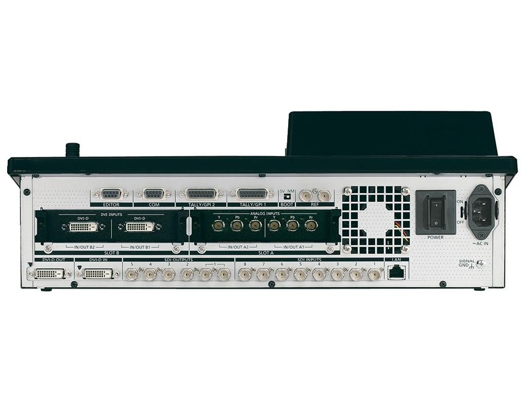 19 tipi kabin rafı boyutlu 1ME canlı yapım masasının sadece 48.26 cm genişlikte olmasına rağmen standart yapılandırmasında sunduğu dokuz sinyal girişi, opsiyonel kartlarla en fazla 13 sinyal girişine (HD/SD anahtarlanabilir) kadar çıkarılabiliyor. 177.8 mm renkli LCD panel, ayarları okunması kolay bir biçimde görüntülüyor. Önceki modele göre yeni bellek önizleme işlevi, geliştirilmiş çoklu görüntüleme işlevi ve canlı yayına yönelik basit tuş düzeni, kullanım kolaylığını daha da ilerletiyor. Standart yapılandırmada HD ve SD çoklu formatta sinyalleri destekliyor. Sistem frekansı 60 Hz, 50 Hz ve 24 Hz arasında ayarlanabildiği için, dünya çapında çalışabilme ve dijital sinema yapımını mümkün kılıyor. Standart olarak sekiz SDI girişi ve bir DVI-D girişi var.