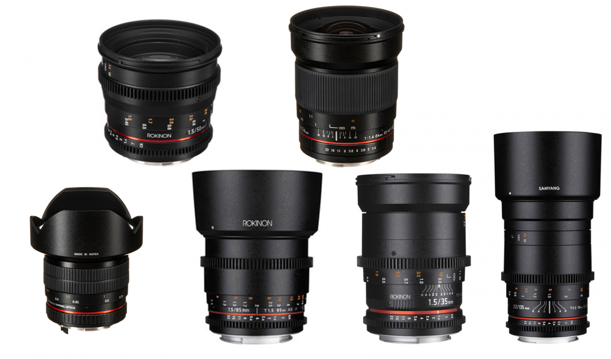 Samyang Sinema Lens Seti, 16mm, 24mm, 35mm, 50mm, 85mm, 135mm 6 adet Samyang lens seti tüm lens ihtiyacaınızı karşılayabilirsiniz.