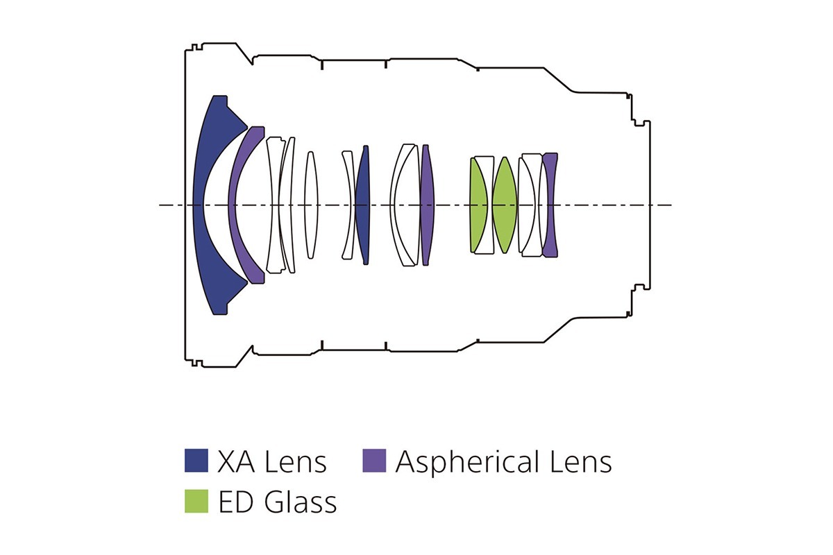 Optik tasarımda, iki XA elemanı ve üç asferik elemanın yanı sıra renk sapmalarını azaltmak için iki ekstra düşük dağılım unsuru bulunuyor