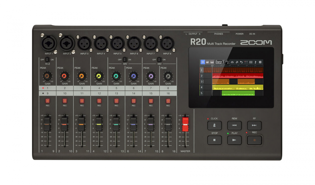 Zoom R20 , başarılı Zoom çok kanallı kayıt cihazlarının tüm özelliklerini 4,3" LCD dokunmatik ekran, düzenleme işlevlerine doğrudan erişim, 16 kanallı dijital mikser, ses arabirimi ve yerleşik ses üreteci ile sürekli olarak modern bir üretim ortamına taşır.